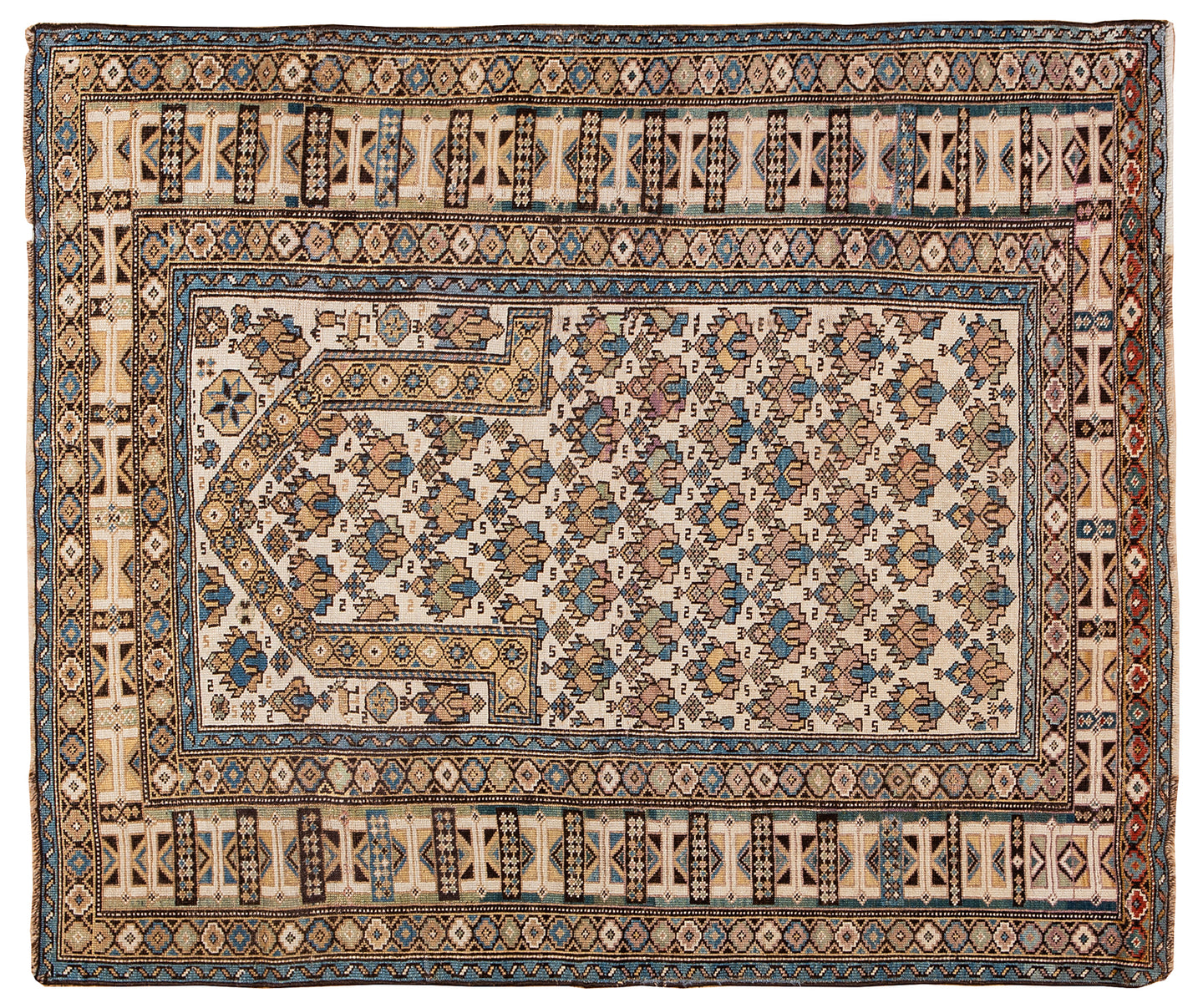 Disegno a nicchia su fondo avorio con rara bordura a nastri Epoca Fine 800 stato di conservazione Ottimo ordito, trama e vello in lana con colori vegetali